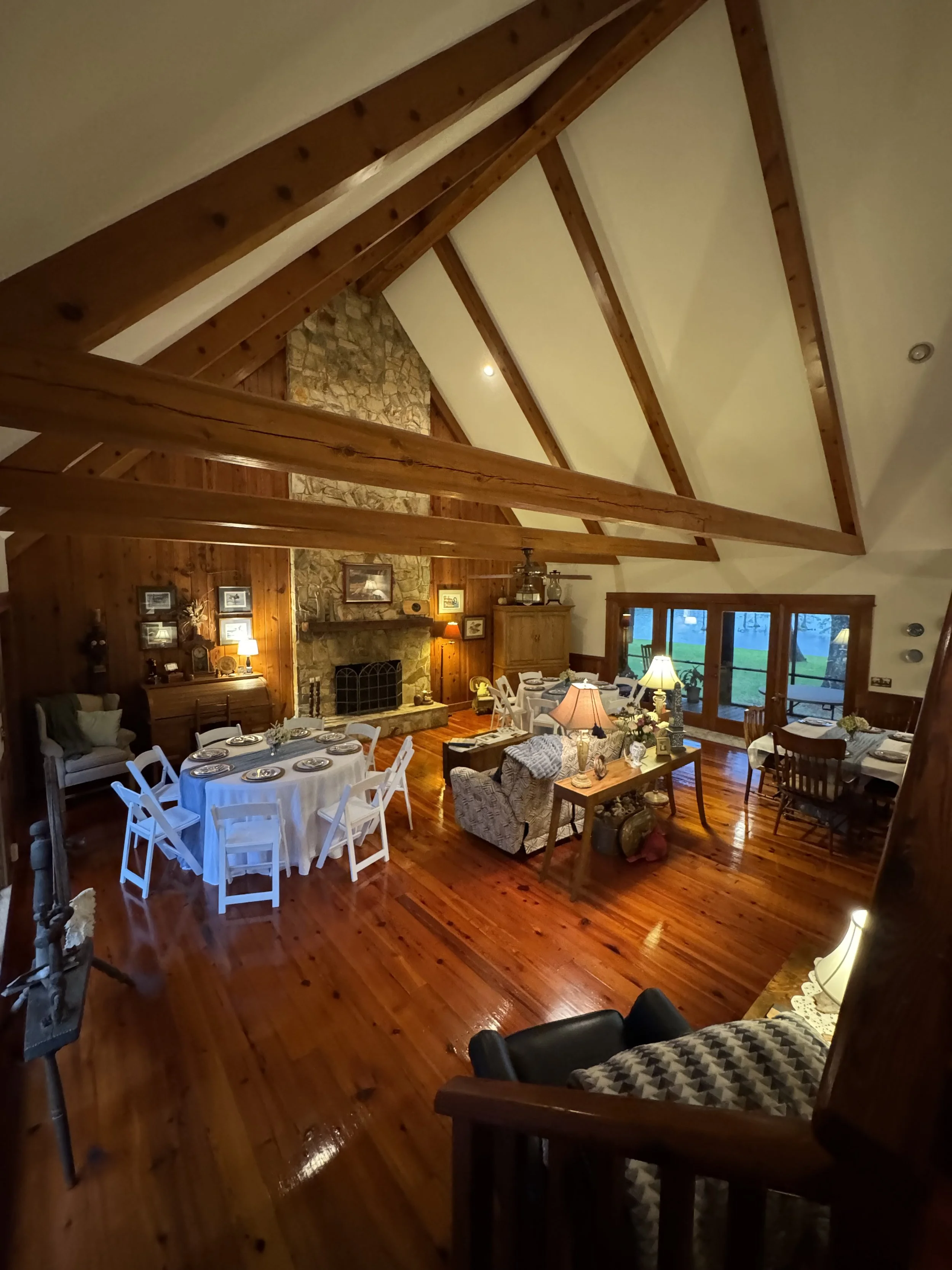 Our parents moved the tobacco barn, which was located on the north side of the farm, to its current location in 1986. In 1987 they constructed the original cabin which they enjoyed on weekends and holidays. They loved the peacefulness they found in the country. Later, before our daddy, Joe McNair retired they sold their home in Ashburn and added onto the cabin. Our mother, Ramona McNair, loved to entertain and she wanted to have room to host the parties she enjoyed having.